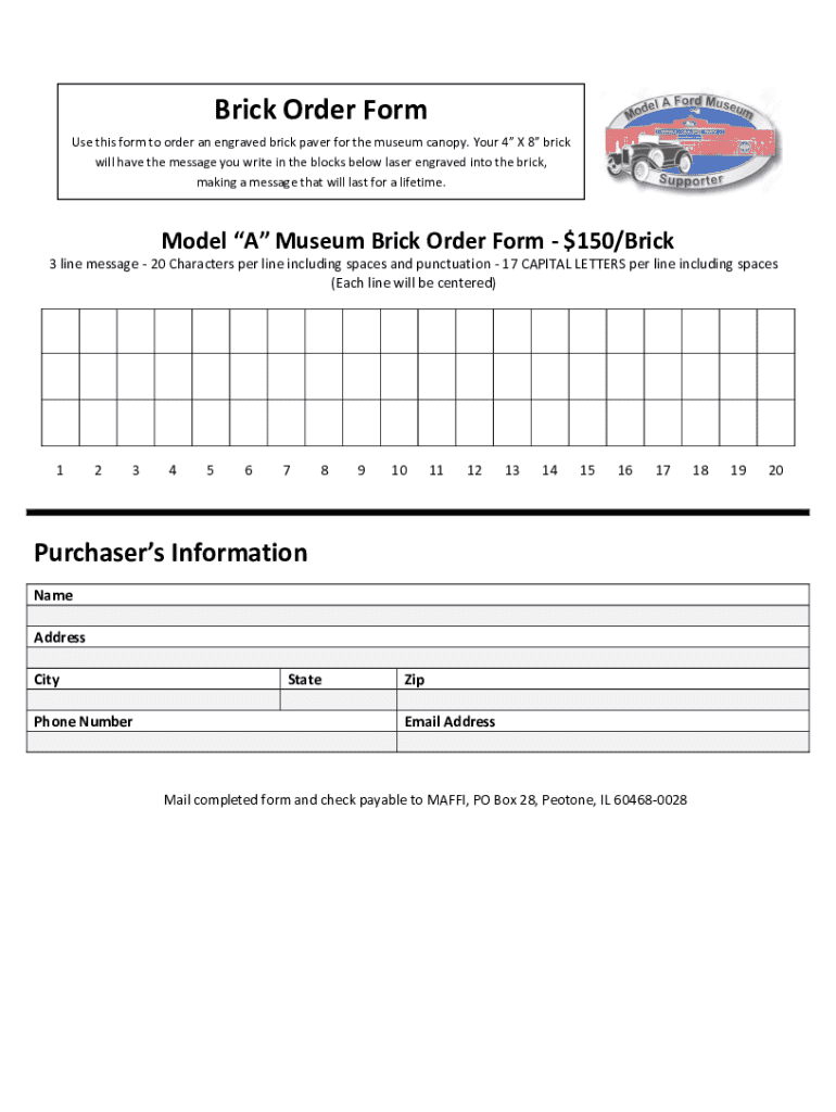 Completing the engraved bricks and pavers form is a vital step in the ordering process. Understanding the fields required is crucial for a smooth order experience. Essential information typically includes your personal details, project specifications, and payment options. Be mindful of deadlines if you are working towards an event.