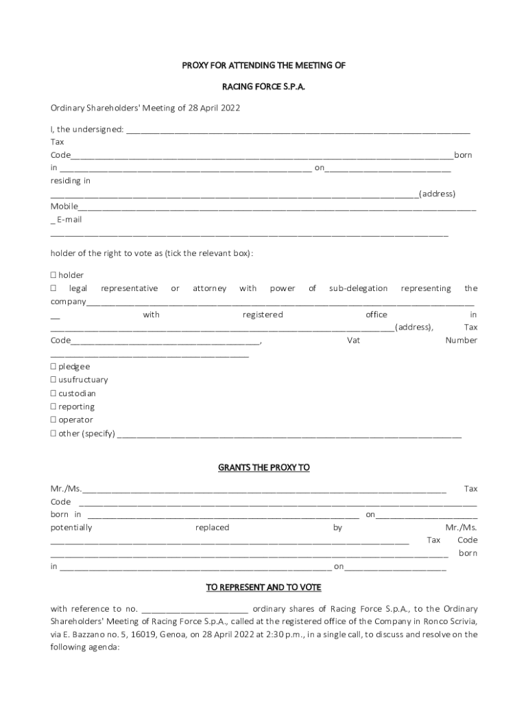 Get the free PROXY FORM Reway Group S.p.A. Ordinary Shareholders ...
