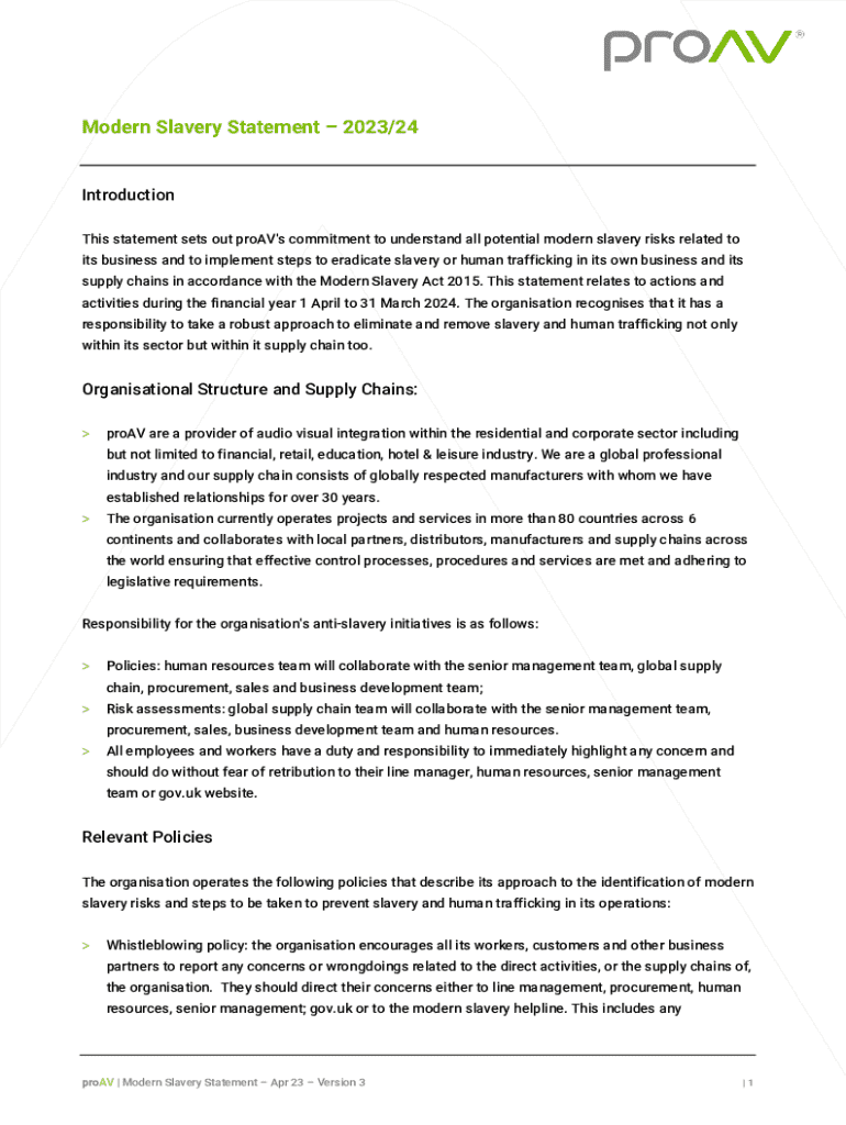 Modern Slavery Statement 2023/24 Introduction This statement sets out prov\'s commitment to understand all potential modern slavery risks related to its business and to implement steps to eradicate