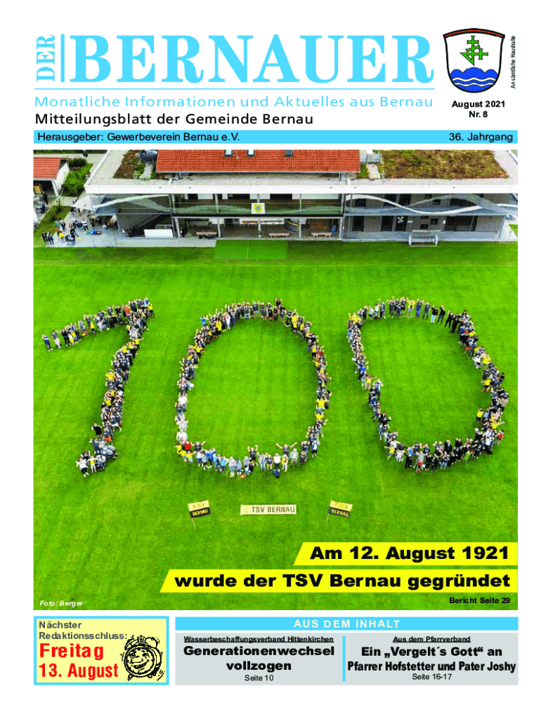 Monatliche Informationen und Aktuelles aus Bernau Mitteilungsblatt der Gemeinde Bernau H er aus ge be r : Ge we r b e v e re i n B e r n a u e .Bernau V. Herausgeber: Gewerbeverein e.V.An smtliche