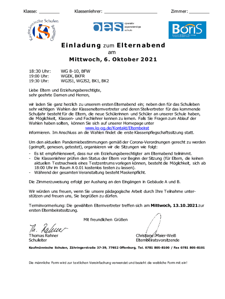 Klasse: ___Klassenlehrer: ___Zimmer: ___E i n l a d u n g zum E l t e r n a b e nd am M ittw oc h , 6 . Oktob e r 2 0 2 118:30 Uhr: 19:00 Uhr: 19:30 Uhr:WG 810, BFWWGEK, BKFR WGJS1, WGJS2, BK1, BK2Liebe