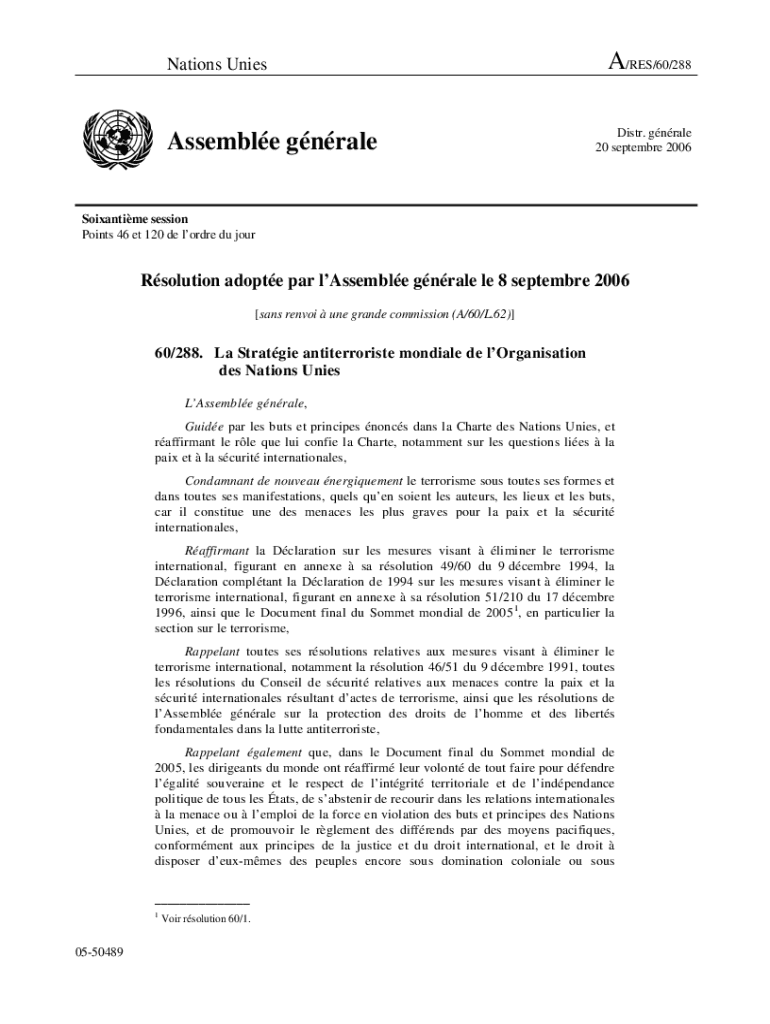 Obtenir le gratuit rsolution 60/288 de l'Assemble gnrale