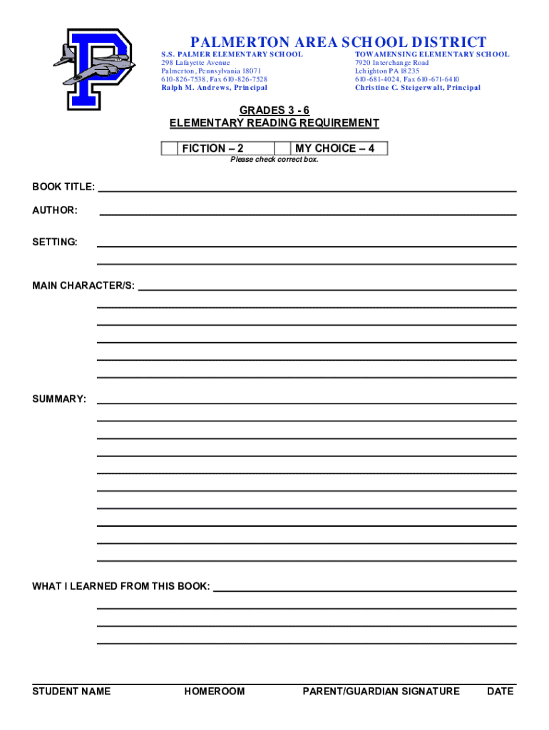 PALMERSTON AREA SCHOOL DISTRICTS. S. PALMER ELEMENTARY SCHOOL 298 Lafayette Avenue Palmerston, Pennsylvania 18071 6108267538, Fax 6108267528 Ralph M. Andrews, PrincipalTOWAMENSING ELEMENTARY SCHOOL