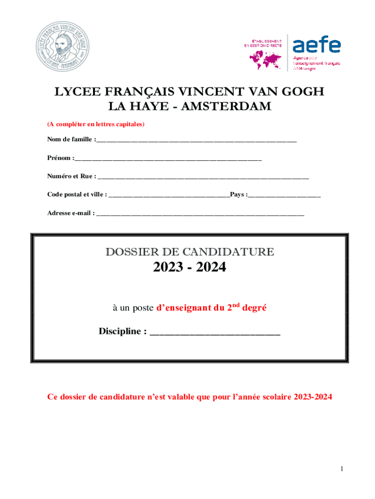 Comment remplir lycee franais vincent van?