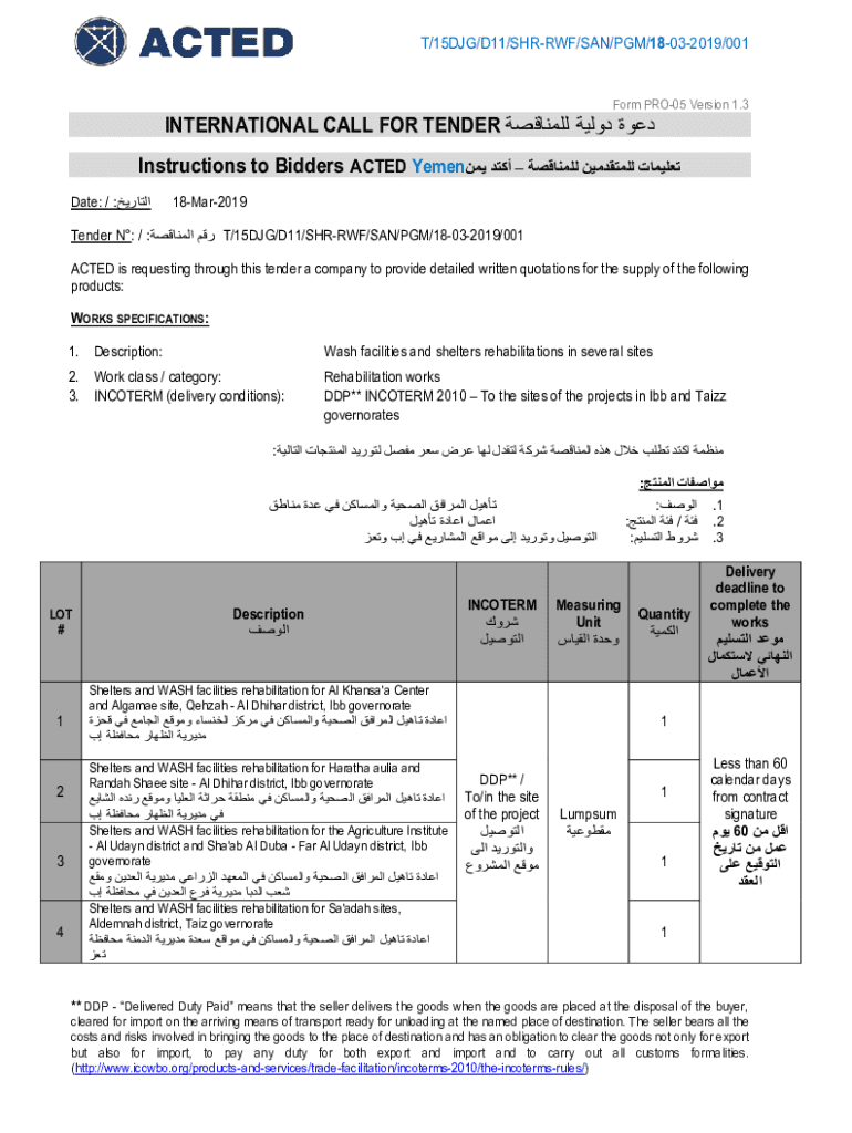 Get the free Instructions to Bidders ACTED Yemen