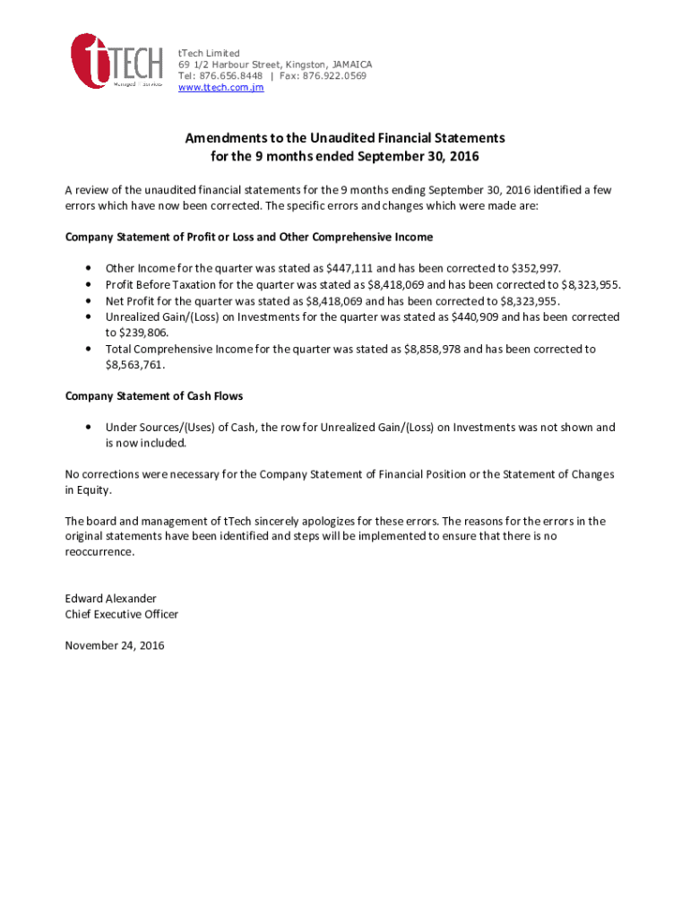 How to fill out ttech limited unaudited financial