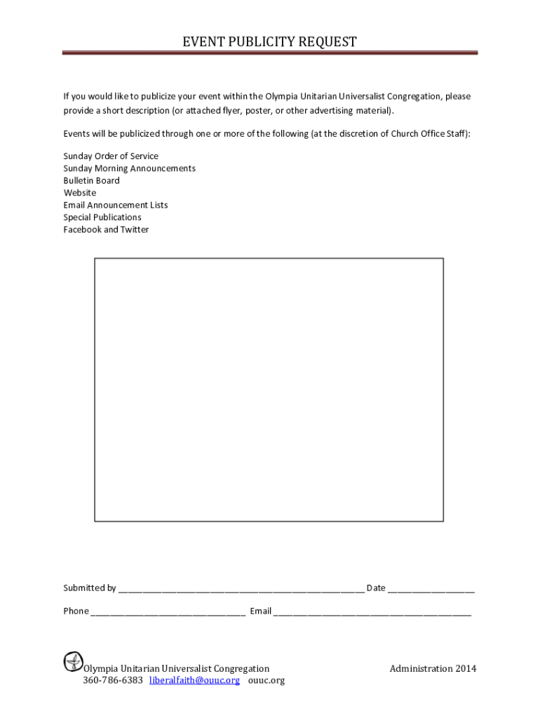 Fill out your event publicity request online with pdfFiller!