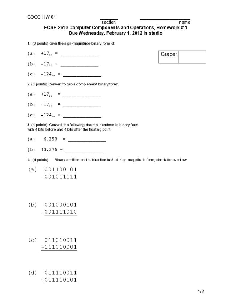 Get the free Binary Arithmetic: Logic Diagrams, Sign-Magnitude, Two's