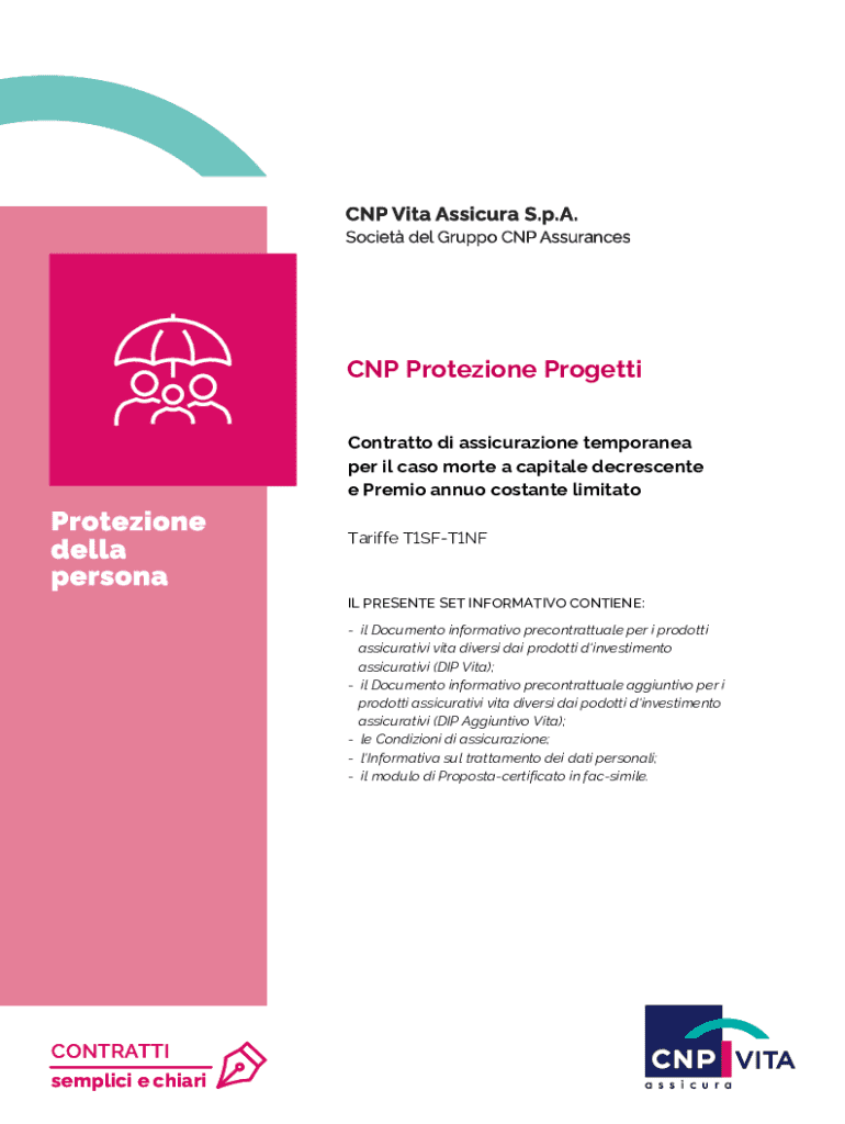 CNP Vita Assicura S.p.A. Societ del Gruppo CNP AssurancesCNP Protezione Progetti Contratto di assicurazione temporanea per il caso morte a capitale decrescente e Premio annuo costante limitatoProtezione