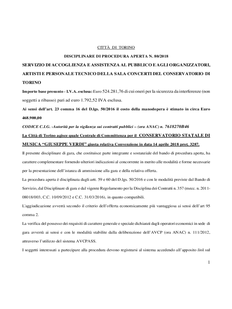 DISCIPLINARY DI PROCEDURE APE RTA N. 80/2018SERVIZIO DI ACCOGLIENZA E ASSISTANCE AL PUBLIC E AGNI ORGANIZZATORI,