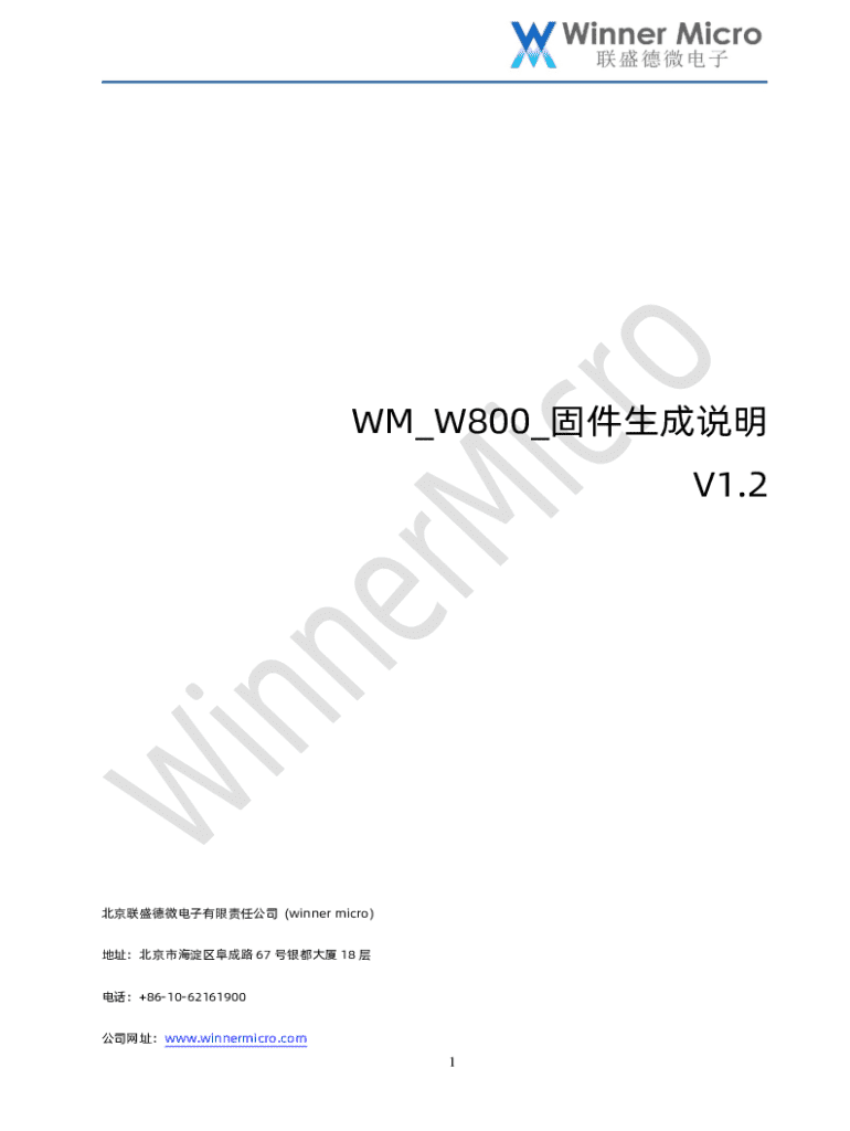 WM_W800_ V1.2 (winner micro) 67 18 +861062161900 www.winnermicro.com1 V0.12019/9/25[C]CuiycV0.22020/7/8CuiycV1.02020/8/10CuiycV1.12021/2/23 SDK CuiycV1.22021/5/13 Cuiyc w800