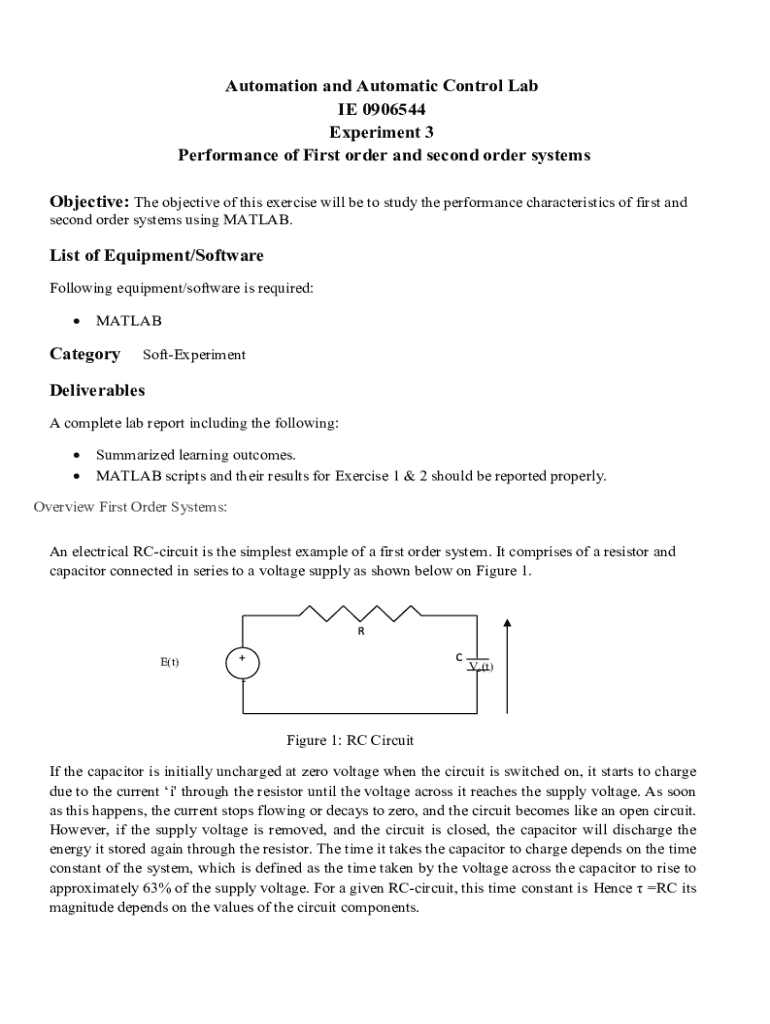 Get the free Objective: To determine response of first order and second ...