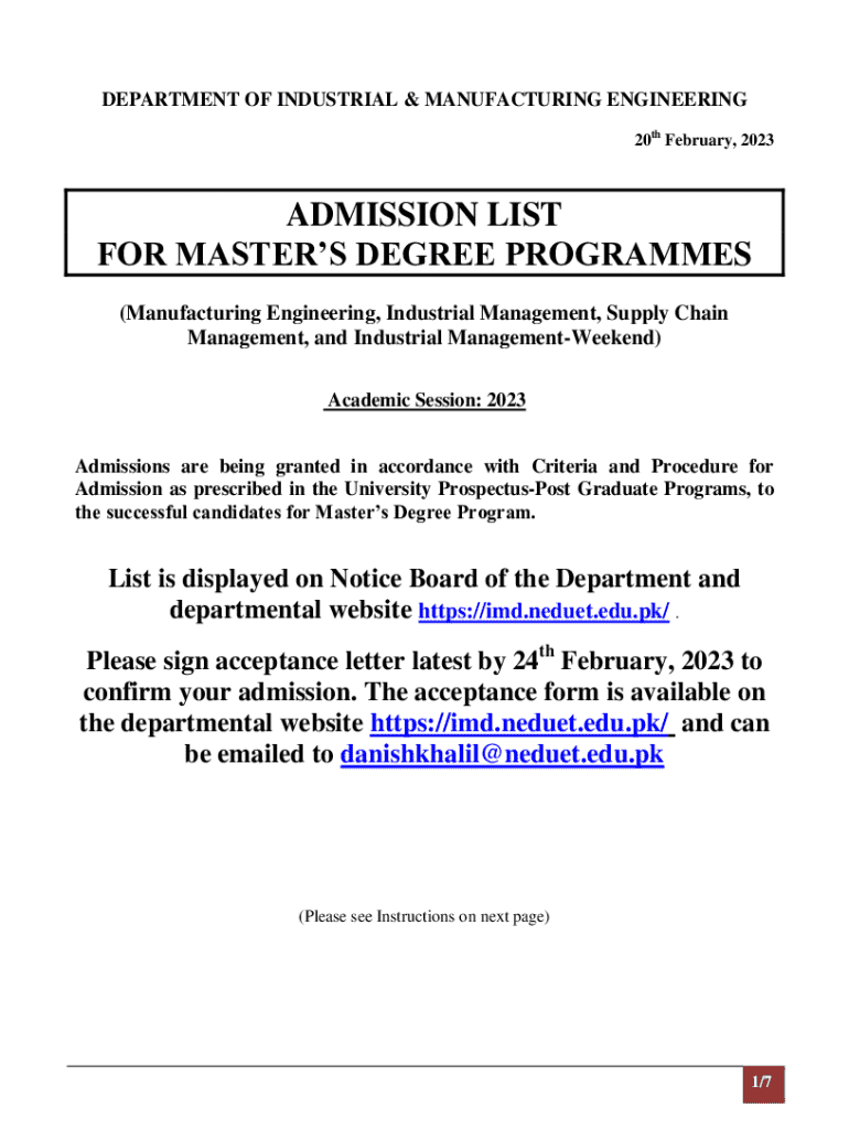 Moreover, the admission list plays a pivotal role in determining eligibility for admission. Colleges and universities utilize these forms to compile lists of candidates who meet their criteria, ultimately shaping the incoming classes each academic year. Knowing the eligibility criteria becomes essential for applicants to ensure they fulfill all requirements necessary for inclusion in the admission lists.