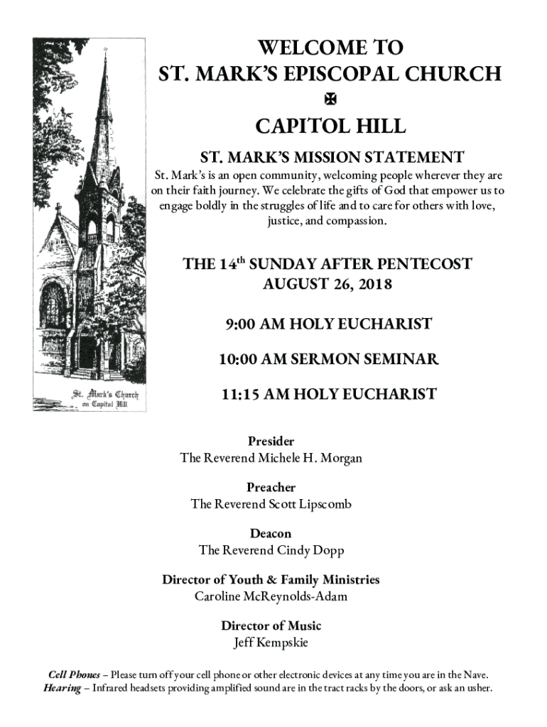 WELCOME TO ST. MARKS EPISCOPAL CHURCH. CAPITOL HILL ST. MARKS MISSION Statements. Marks is an open community, welcoming people wherever they are on their faith journey. We celebrate the gifts of God