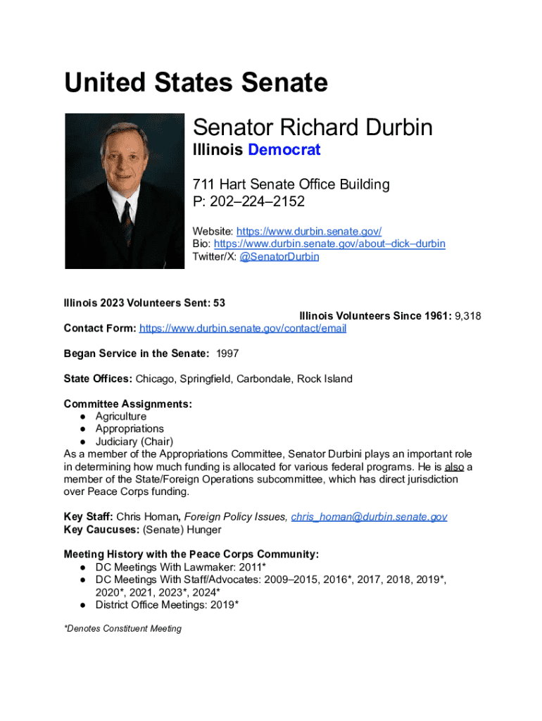 Senator Richard Durbin is not the form you're looking for?Search for another form here.