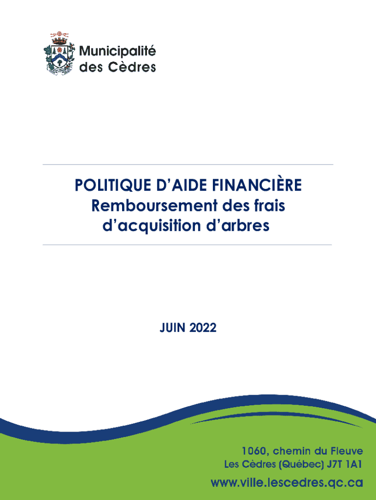 POLITIQUE DAIDE FINANCIRE Remboursement des frais dacquisition darbresJUIN 2022TABLE DES MATIRES 1.PRAMBULE ..............................................................................................................