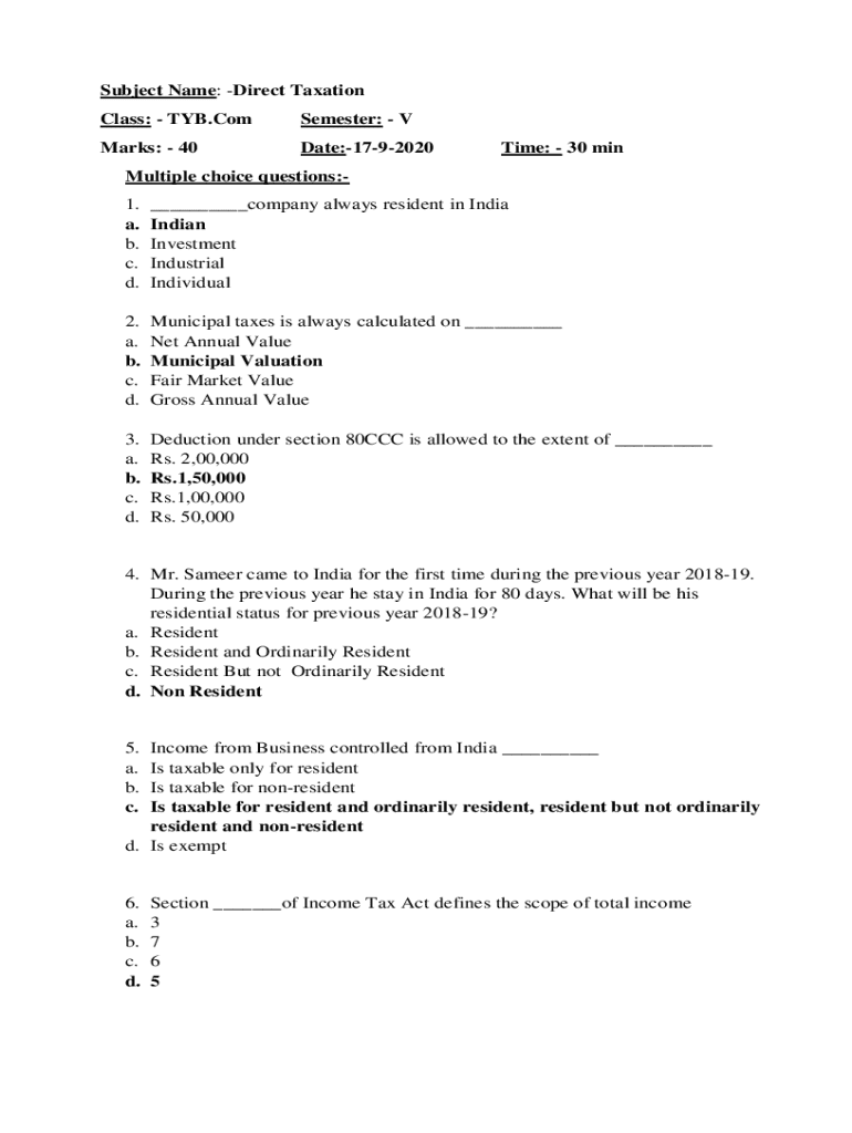 Get the free T.Y.B.Com.Paper - V - Sec.I - Direct Taxes
