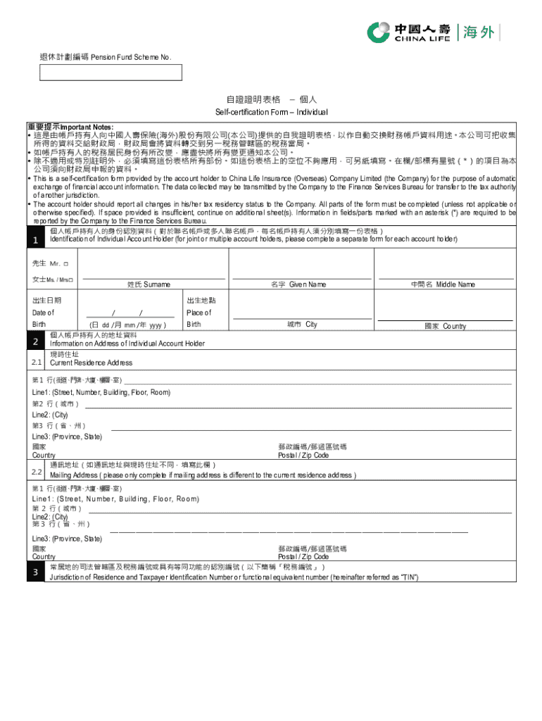 Pension Fund Scheme No. Selfcertification Form Individual Important Notes: ()()