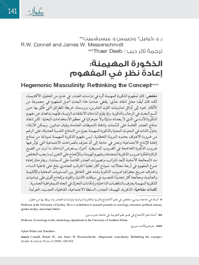 141** (((5 . .* . (((5R.W. Connell and James W. Messerschmidt | Thaer Deeb***(((5 : (((5 ****Hegemonic Masculinity: Rethinking the Concept