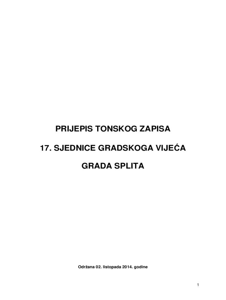 PRIJEPIS TONSKOG ZAPISA 17. SJEDNICE GRADSKOGA VIJEA GRADA SPLITAOdrana 02. listopada 2014. godine1S A D R A JDNEVNI RED:1. Vijenika pitanja i odgovoriStranica82. Usvajanje Zapisnika sa 16. sjednice