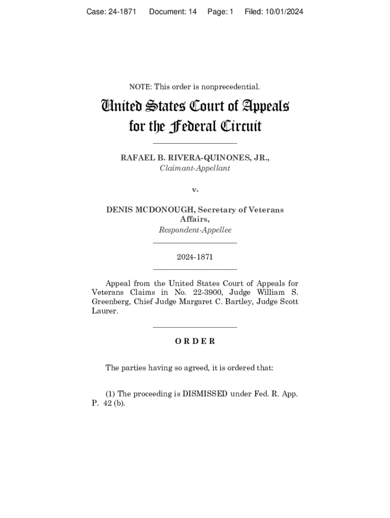 Get the free RIVERA-QUINONES v. MCDONOUGH ORDER(pdf) - cafc uscourts