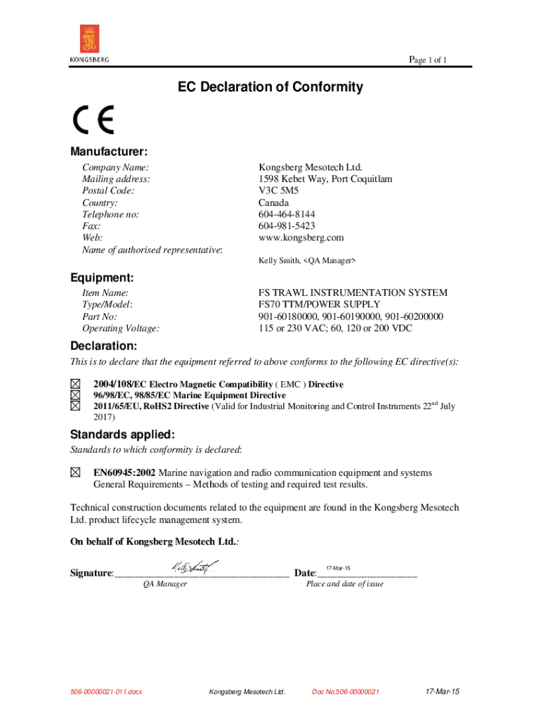 Edit your ec declaration of conformity form online