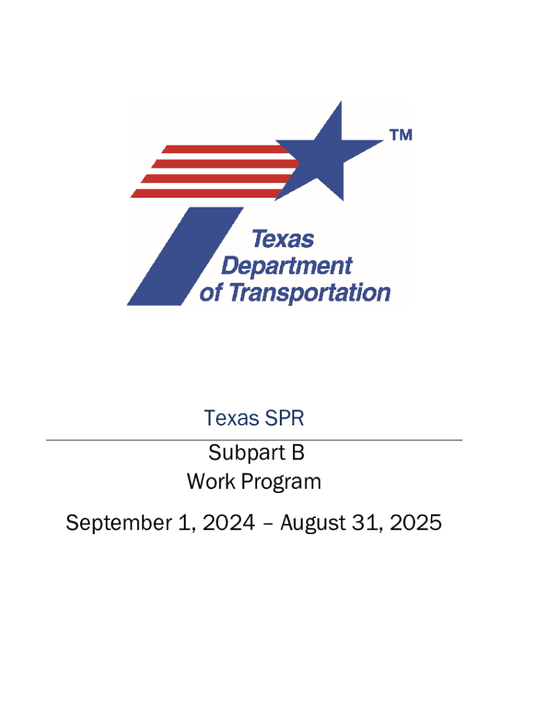 Texas SPR Subpart B Work Program September 1, 2024 August 31, 2025Certification and Disclaimer Statements State Planning & Research Subpart B, Research, Development, and Technology Transfer Program