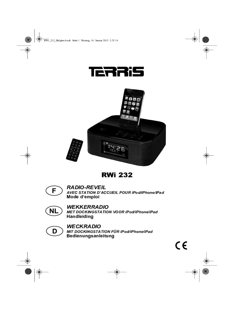 RWi_232_Belgien.book Seite 1 Montag, 14. Januar 2013 2:53 14RWi 232 F NL DRADIOREVEIL AVEC STATION DACCUEIL POUR iPod/iPhone/iPadMode demploiWEKKERRADIO MET DOCKINGSTATION VOOR iPod/iPhone/iPadHandleidingWECKRADIO