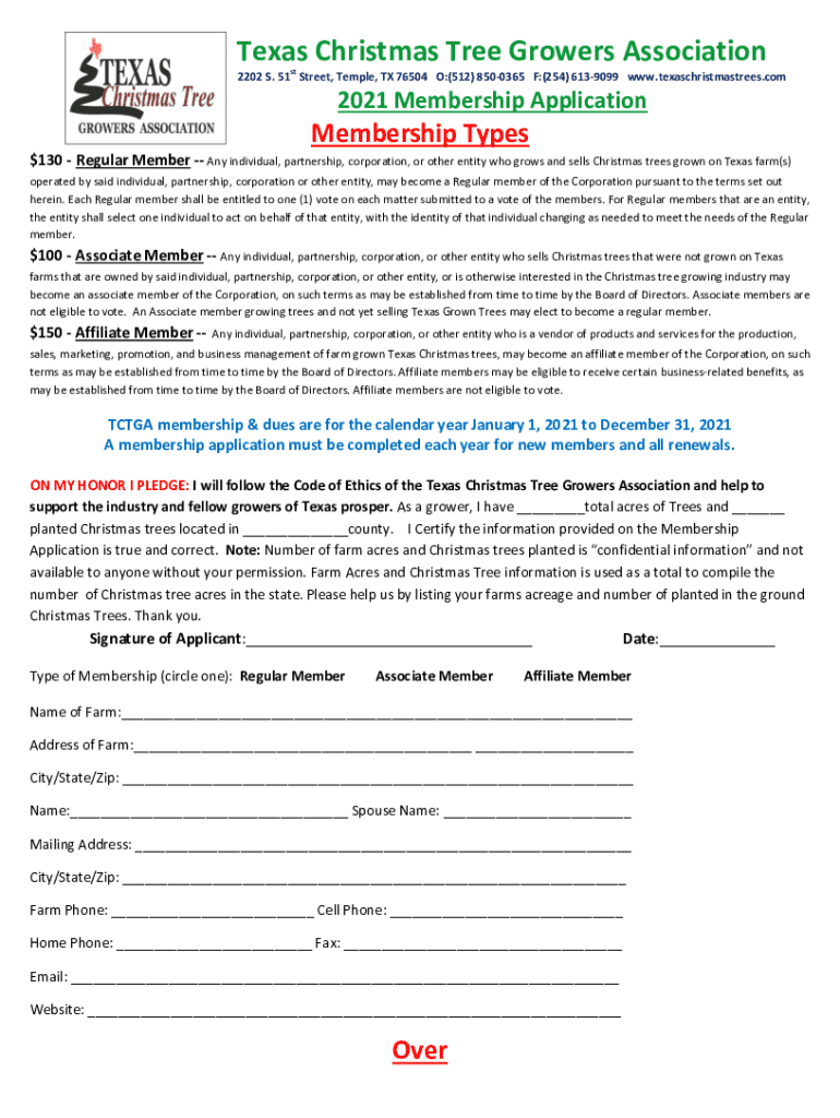 Texas Christmas Tree Growers Association st2202 S. 51 Street, Temple, TX 76504 O:(512) 8500365 F:(254) 6139099 www.texaschristmastrees.com2021 Membership ApplicationMembership Types $130 Regular Member