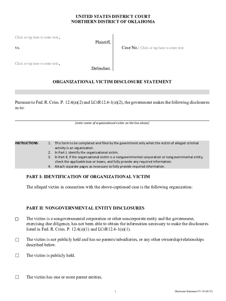 How to fill out organizational victim disclosure statement?