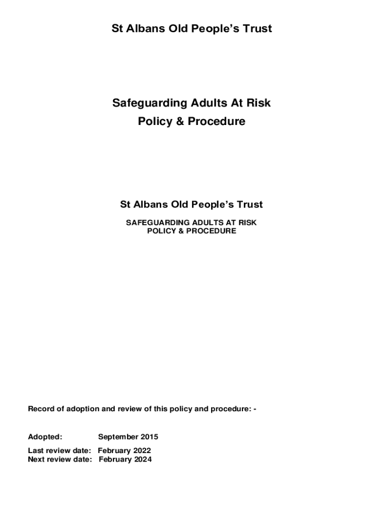 St Albans Old Peoples TrustSafeguarding Adults At Risk Policy & ProcedureSt Albans Old Peoples Trust SAFEGUARDING ADULTS AT RISK POLICY & PROCEDURERecord of adoption and review of this policy and