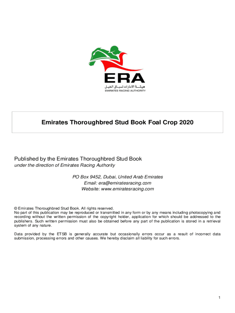 Get the free Emirates Thoroughbred Stud Book Foal Crop 2020