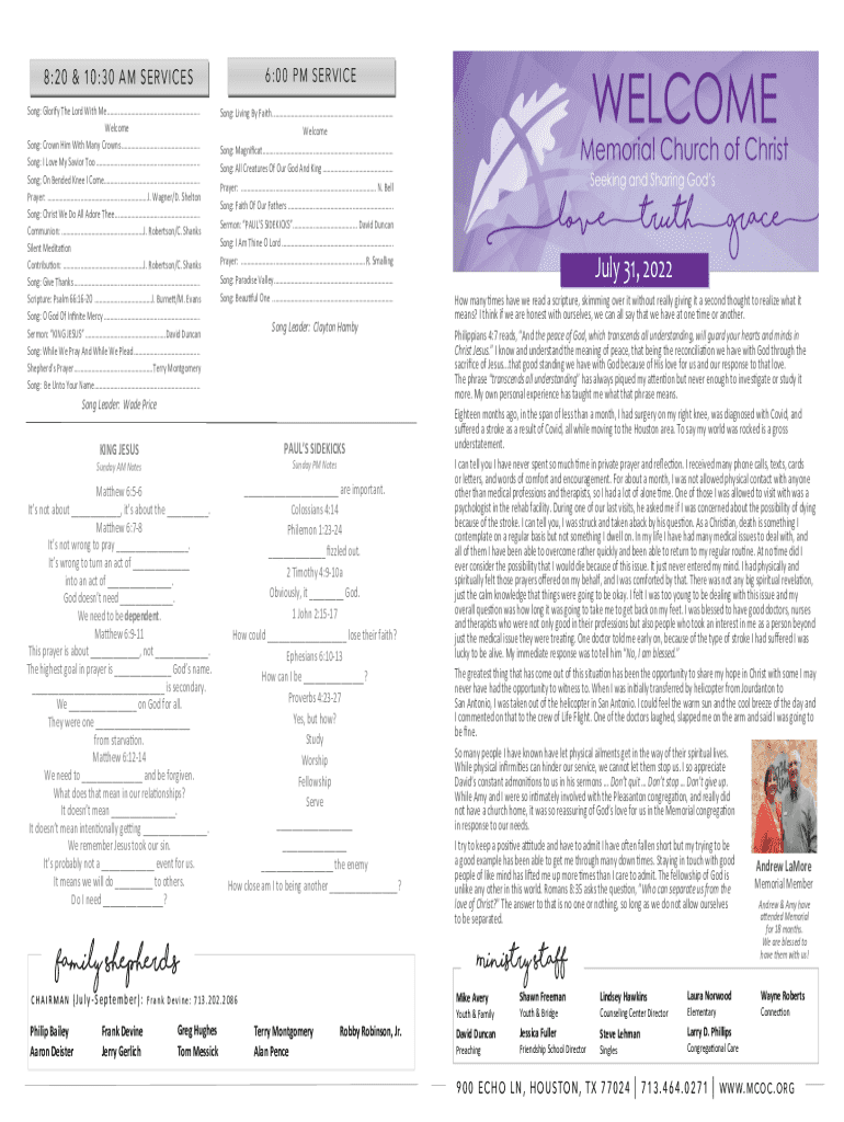 6:00 PM SERVICE8:20 & 10:30 AM SERVICES Song: Glorify The Lord With Me ........................................................... Welcome Song: Crown Him With Many Crowns ..................................................