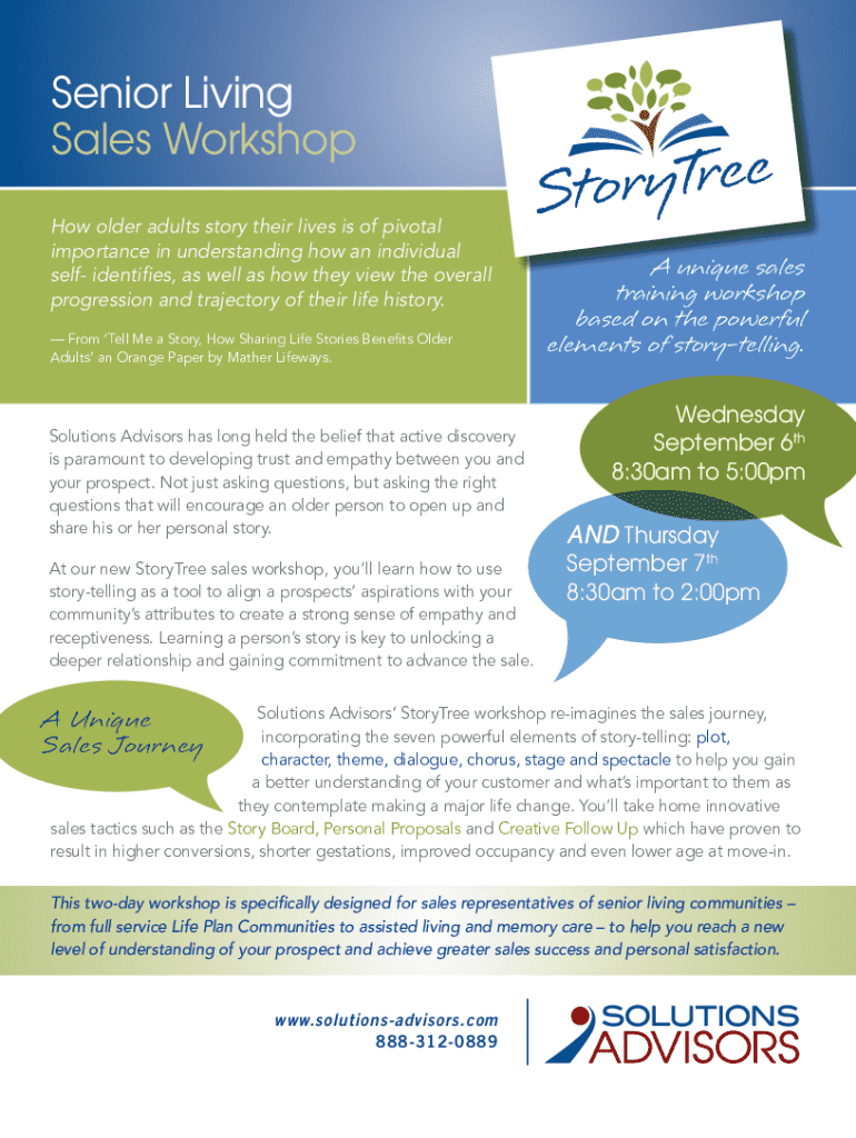 Senior Living Sales Workshop How older adults story their lives is of pivotal importance in understanding how an individual self identifies, as well as how they view the overall progression and trajectory