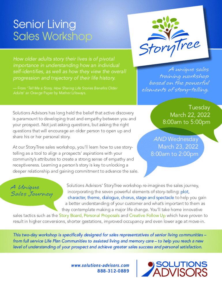 Senior Living Sales Workshop How older adults story their lives is of pivotal importance in understanding how an individual selfidenties, as well as how they view the overall progression and trajectory