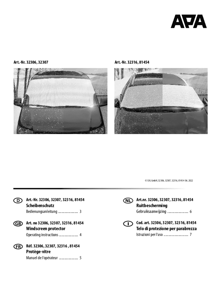 Art.Nr. 32306, 32307Art.Nr. 32316, 81454 EAL GmbH, 32306, 32307, 32316, 81454 06. 2022Art.Nr. 32306, 32307, 32316, 81454Art.nr. 32306, 32307, 32316, 81454ScheibenschutzRuitbeschermingBedienungsanleitung