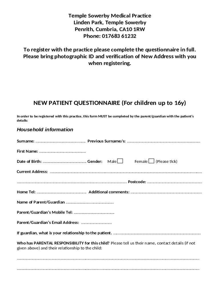 - You can set extra security settings such as authorization of signers by picture or security password. There is an option to secure whole directory with encryption. Place your New Patient Registration Questionnaire writable form and set a password.
