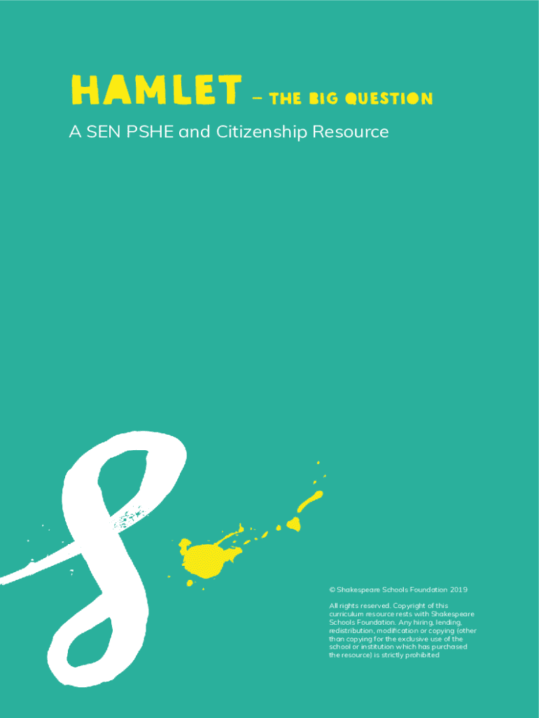 Hamlet The Big QuestionA SEN PSHE and Citizenship Resource Shakespeare Schools Foundation 2019 All rights reserved. Copyright of this curriculum resource rests with Shakespeare Schools Foundation.
