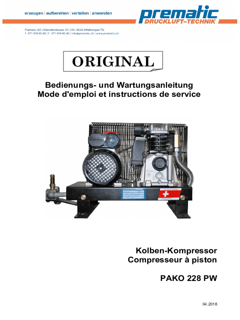 ORIGINAL Bedienungs und Wartungsanleitung Mode d\'emploi et instructions de serviceKolbenKompressor Compresseur piston PAKO 228 PW 04.2018InhaltsverzeichnisTable de matiresErsatzteillisten / Listes
