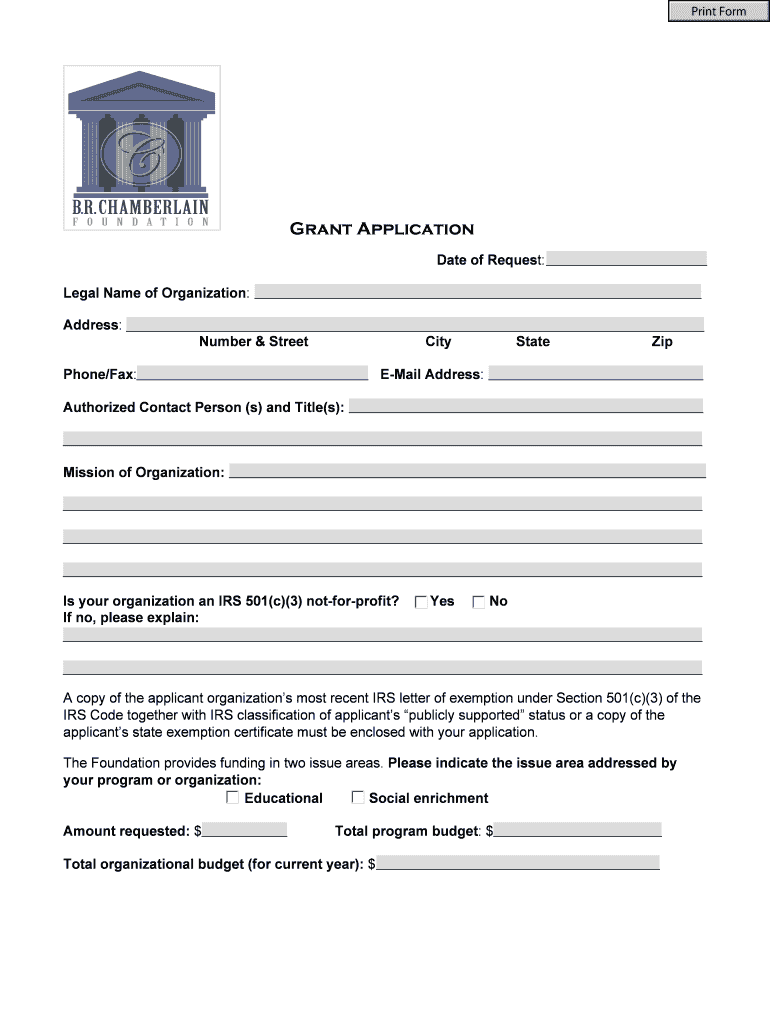 Print Form Grant Application Date of Request: Legal Name of Organization: Address: Number & Street City Phone/Fax: State Zip E-Mail Address: Authorized Contact Person (s) and Title(s): Mission of