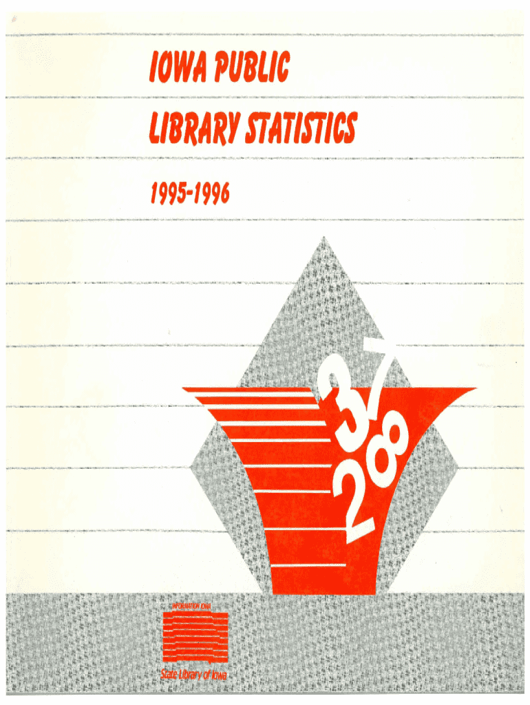IOWA PUBLIC LIBRARY STATISTICS 19951996State Ubrary of A1WaIowa Public Library Statistics 19951996 (FY96) Sharman B. Smith, State Librarian Christie Brandau, Assistant State Librarian Gerry Rowland, EditorLibrary Development State Library of Iowa East 12th and Grand Des Moines, Iowa 50319 This publication was funded under the Library Services and Construction Act administered by the State Library of IowaIowa public library statistics I State Library Commission of Iowa. Des Moines, State