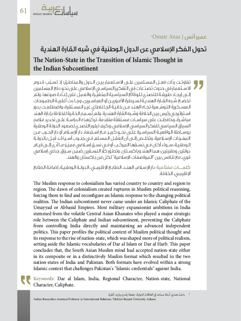 6161 Omair Anas | * The NationState in the Transition of Islamic Thought in the Indian Subcontinent