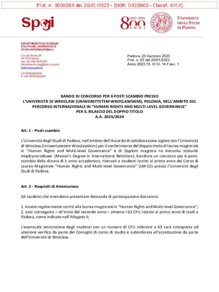 DIPARTIMENTO DI SCIENZE POLITICHE, GIURIDICHE E STUDI INTERNAZIONALI Via del Santo,28 35123 Padova fax +39 049 8274007 dipartimento.spgi@pec.unipd.it www.spgi.unipd.itPadova, 20 Gennaio 2023 Prot.