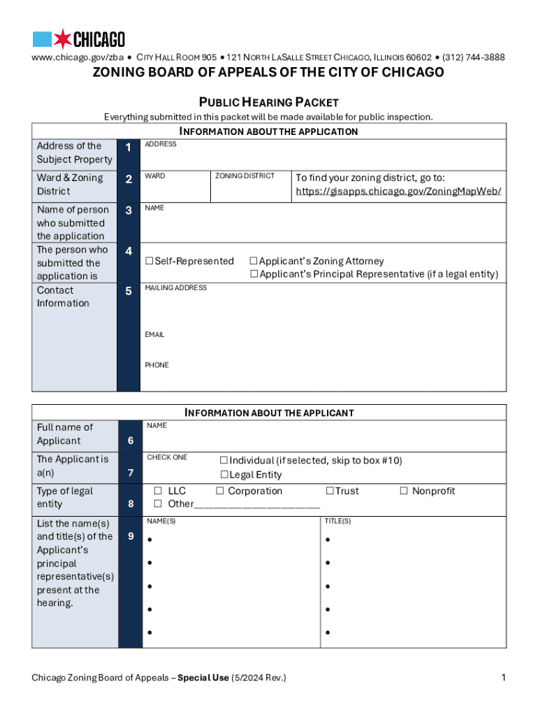 www.chicago.gov/zba CITY HALL ROOM 905 121 NORTH LASALLE STREET CHICAGO, ILLINOIS 60602 (312) 7443888ZONING BOARD OF APPEALS OF THE CITY OF CHICAGO PUBLIC H EARING P ACKETEverything submitted in this