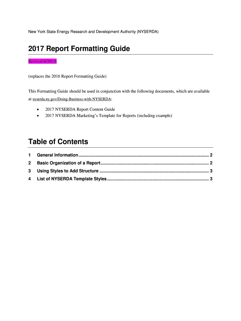 New York State Energy Research and Development Authority (NYSE RDA)2017 Report Formatting Guide Revised 8/26/16 (replaces the 2016 Report Formatting Guide) This Formatting Guide should be used in