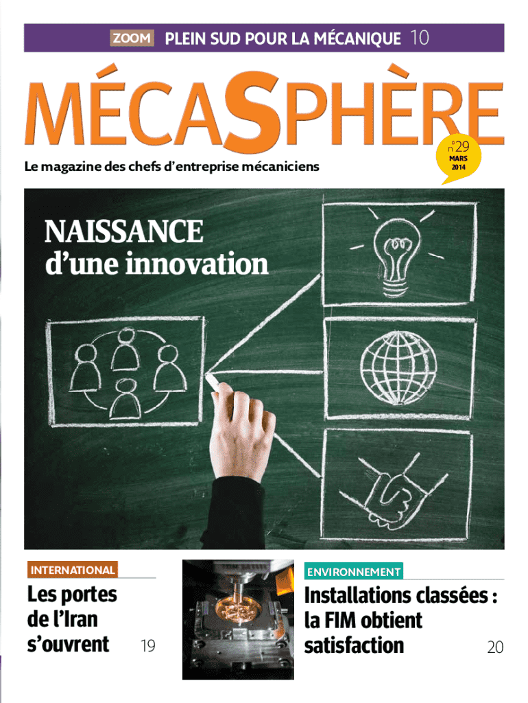 ZOOMPlein sud pour la mcanique10n29Le magazine des chefs dentreprise mcaniciensmars 2014Naissance dune innovationinternationalenvironnementLes portes de lIran souvrentInstallations classes : la FIM