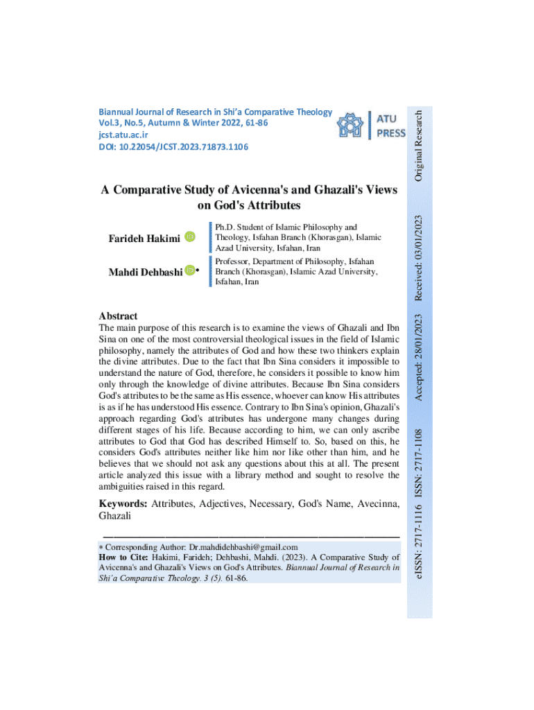 Original ResearchBiannual Journal of Research in Shia Comparative Theology Vol.3, No.5, Autumn & Winter 2022, 6186 jcst.atu.ac.ir DOI: 10.22054/JCST.2023.71873.1106Professor, Department of Philosophy,