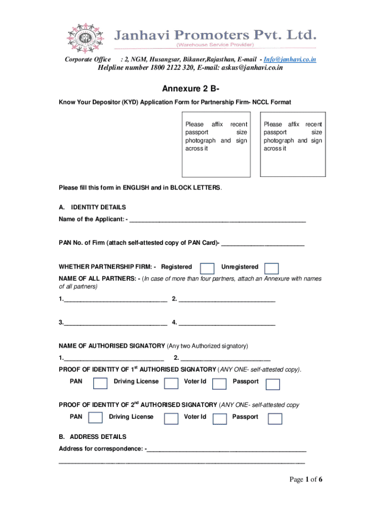 Get the free Know Your Depositor (kyd) Application Form for Partnership Firm - Nccl Format
