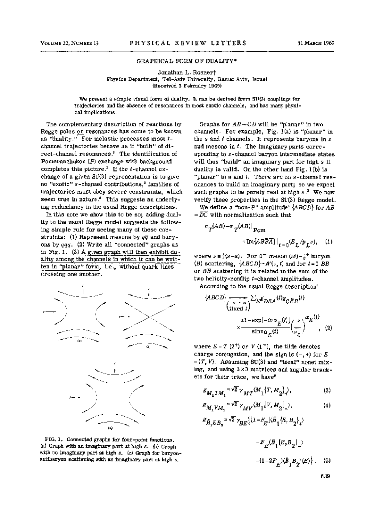 PHYSICAL REVIEW LETTERSVOLUME 22, NUMBER 1331 hG. RGB 1969GRAPHICAL FORM OF DUALITY*JonathanL. RosnerfPhysics Department, TelAviv University, Hamat Aviv, Israel (Received 3 February 1969) We present