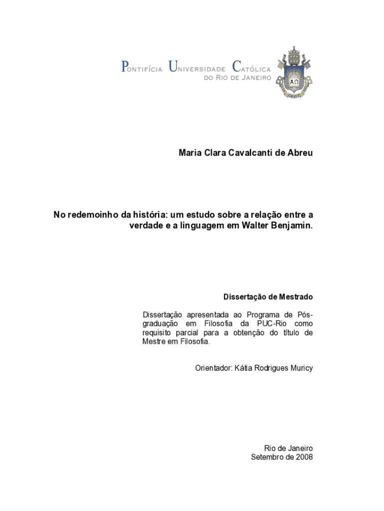 Maria Clara Cavalcanti de AbreuNo redemoinho da histria: um estudo sobre a relao entre a verdade e a linguagem em Walter Benjamin.Dissertao de Mestrado Dissertao apresentada ao Programa de Psgraduao